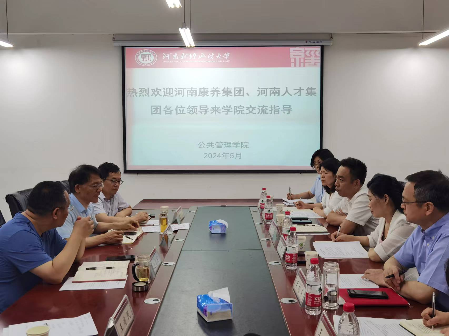 5月22日上午,河南人才集团总经理王利军、河南省产教一体研究院有限公司副总经理王兰、河南康养集团总经理刘雪梅、党总支书记郭鸣、总会计师高洁、综合管理部副主任董守霞、河南康养集团许昌颐养中心院长寇赛等一行人应邀来bevictor伟德沟通交流,劳动与社会保障教研室主任陈书伟、王增民老师参加交流。双方围绕养老服务管理微专业建设、养老服务管理专业人才培养、合作共建高端论坛和智库等事宜,进行了深入交流,并就下一步合作达成共识。